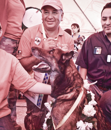 - Perro de Búsqueda y rescate Internacional estructuras colapsadas (RH-FT) IRO-FCI nivel A y B (Mallinois- Pionera en México y en América) más alta puntuación en búsqueda bajo escombros Juez inter. Mr. Walter Hoffman Bogotá, Colombia